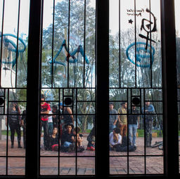 Con la colaboración y entusiasmo del grupo de compañeros estudiantes de la escuela de artes plásticas quienes me ayudaron a realizar la primera cámara se formuló un proyecto que fue ganador de recursos institucionales para financiar la iniciativa de replicar el dispositivo, esta vez abierto al público, en el Hall del segundo piso del edificio de Bellas Artes (301). Esta instalación monumental de cámara oscura duró 3 semanas. Desde una carpa más pequeña adyacente a la ventana fueron capturadas fotografías estenopeicas.