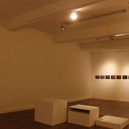 La propuesta instalativa para la exhibición fue la coexistencia entre el proceso creativo que seguía en marcha y la presentación curatorial de las metodologías plásticas de la obra. Un temporizador en la iluminación de la habitación apagaba y encendía súbitamente las luces cada 303 segundos. Este elemento temporal, un boceto del reloj solar lijado sobre el piso de madera de la habitación y unos registros fotográficos fueron los elementos que evocaban el reloj solar. Sólo un positivo de la serie fue impreso para la exposición como evidencia del proceso fotográfico y como promesa de la publicación del resto de la serie fotográfica, la cual aún no ha sucedido de manera formal.
